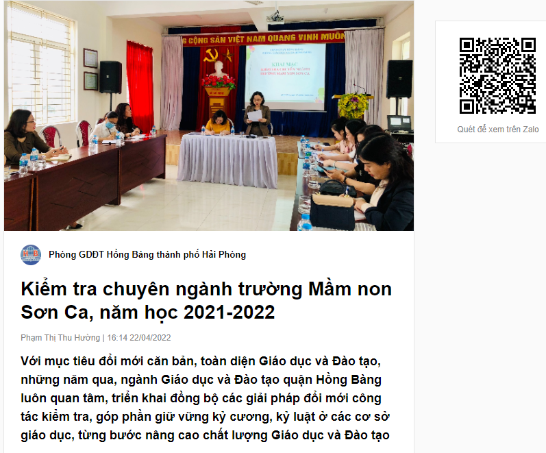 Thực hiện Quyết định số 80/QĐ-PGDĐT ngày 23/11/2021 của Phòng Giáo dục và Đào tạo về việc kiểm tra chuyên ngành trường Mầm non Sơn Ca, năm học 2021-2022, đoàn kiểm tra chuyên ngành đã tiến hành làm việc trong 02 ngày 20, 21/4/2022.