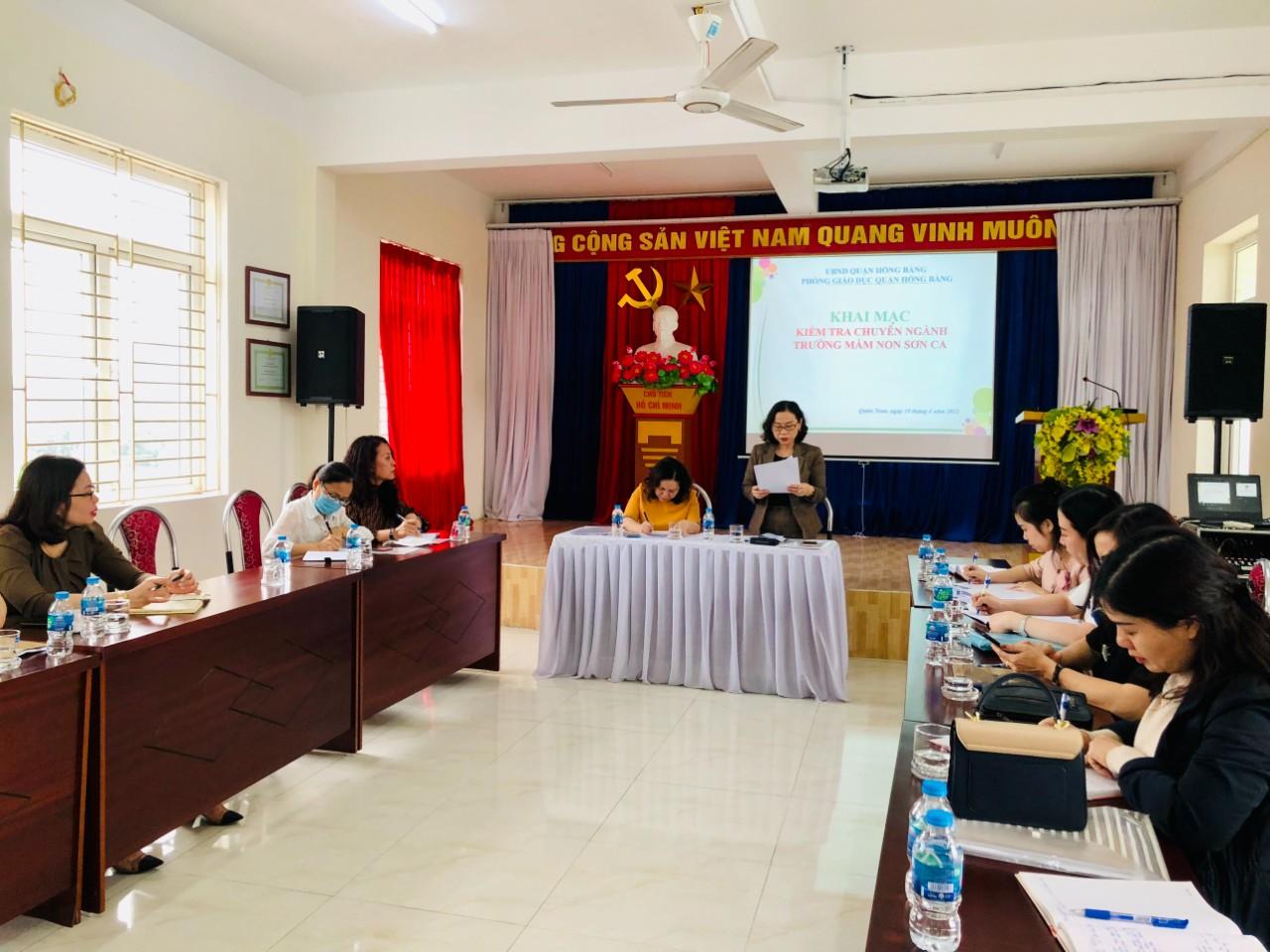 Đến dự khai mạc buổi kiểm tra chuyên ngành tại trường Mầm non Sơn Ca có các đồng chí lãnh đạo, chuyên viên Phòng Giáo dục và Đào tạo Hồng Bàng; lãnh đạo UBND phường Quán Toan; Trưởng Ban đại diện cha mẹ trẻ em nhà trường; Ban giám hiệu, tổ trưởng chuyên môn trường Mầm non Sơn Ca.